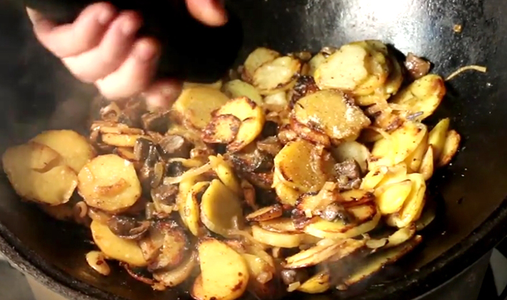 - Champignons noirs salés sautés aux pommes de terre: une recette étape par étape
