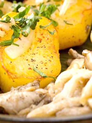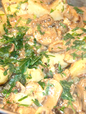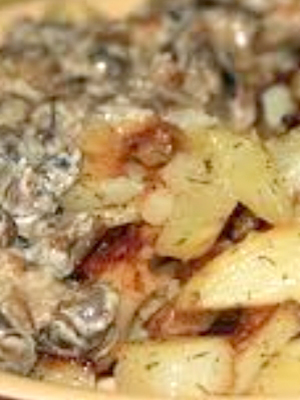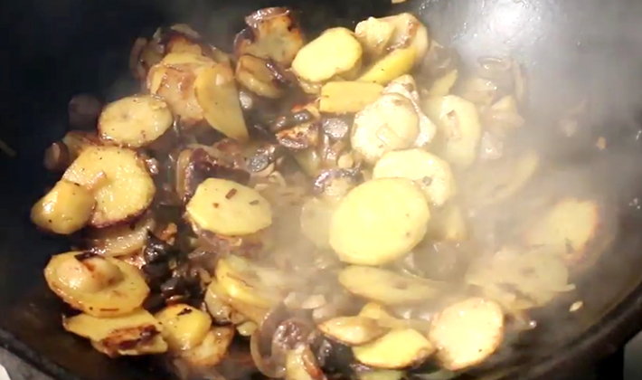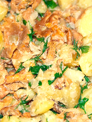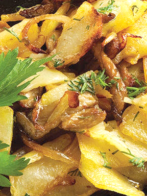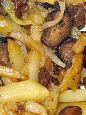 - Champignons frits avec pommes de terre et oignons