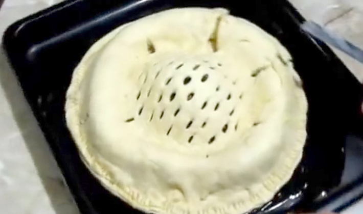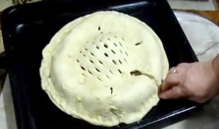 Au milieu de la couche supérieure, faites un trou pour que la vapeur sorte du remplissage pendant la cuisson.