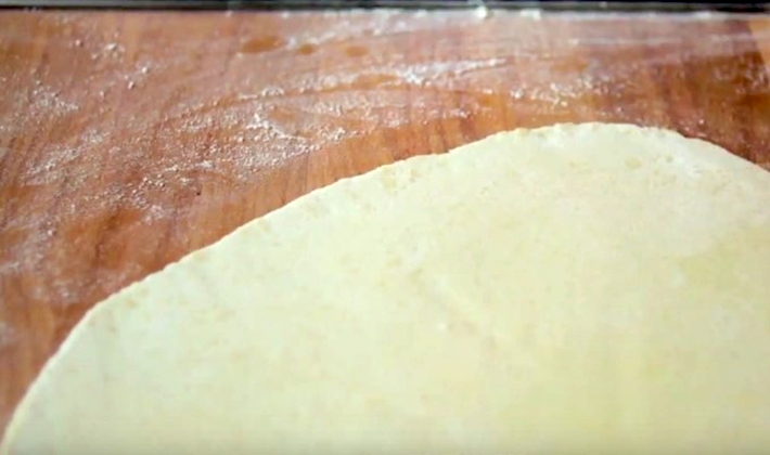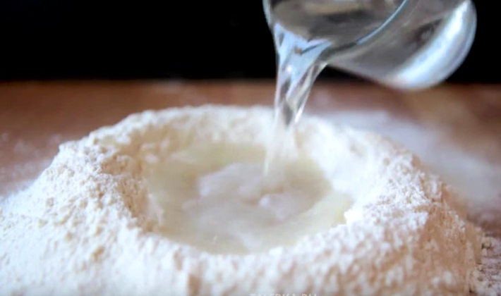 de farine, eau tiède, sel et huile végétale, pétrir une pâte raide mais élastique, la mettre dans un sac en plastique et laisser à la température ambiante pendant 1 heure.