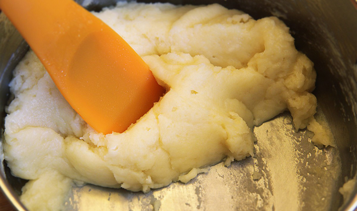 Une fois refroidi, incorporer les œufs et bien mélanger.