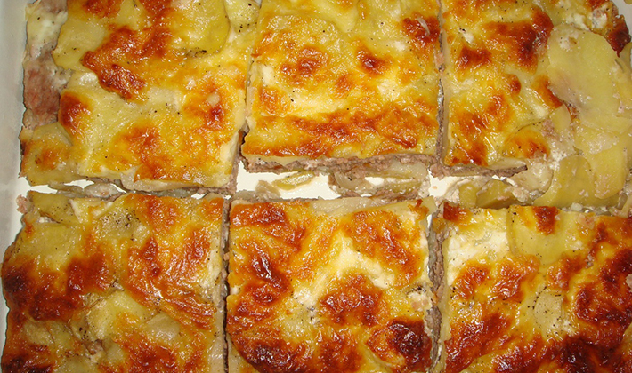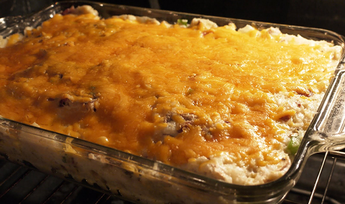 Casserole prête à refroidir légèrement, couper en portions et servir.