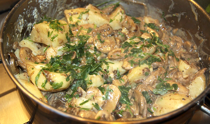 - Cuire les champignons avec des pommes de terre dans une cocotte