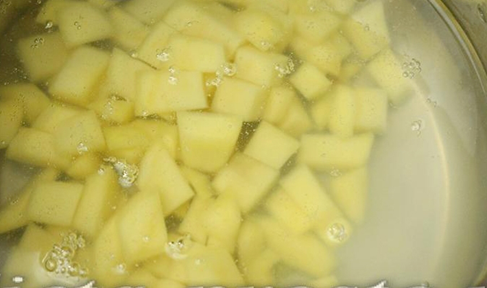 - Mettez dans une casserole, ajoutez de l'eau pour couvrir les pommes de terre et faites cuire jusqu'à tendreté.