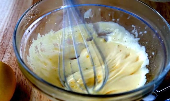 Dans un bol, battez les œufs avec un fouet pour que les blancs et les jaunes se combinent.