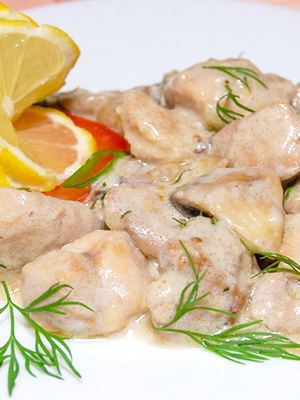 - Viande de poulet en sauce a la crème aigre avec cèpes séchée