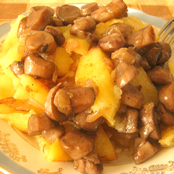 Pommes de terre frites aux girolles à la crème sure - une recette que vous pouvez surprendre maison.