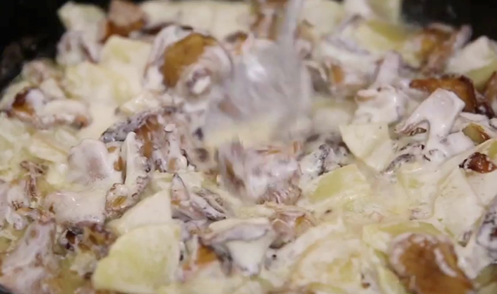 - Cuisson des girolles à la crème sure avec pommes de terre au four