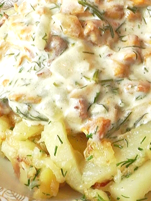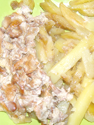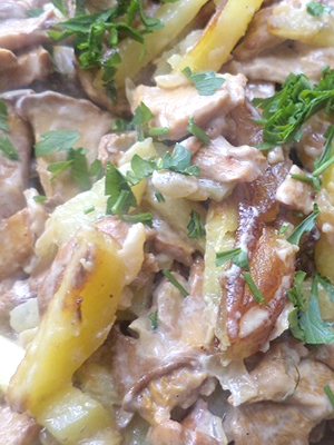 - Chanterelles avec pommes de terre et crème sure, cuites au four