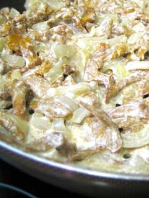 - Comment faire frire les girolles avec des pommes de terre à la crème sure avec des oignons