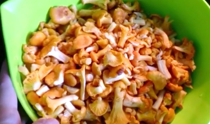 - Les chanterelles sont bien lavées et versées à l’eau tiède pendant 20 minutes.