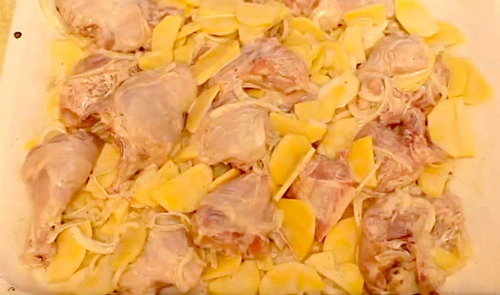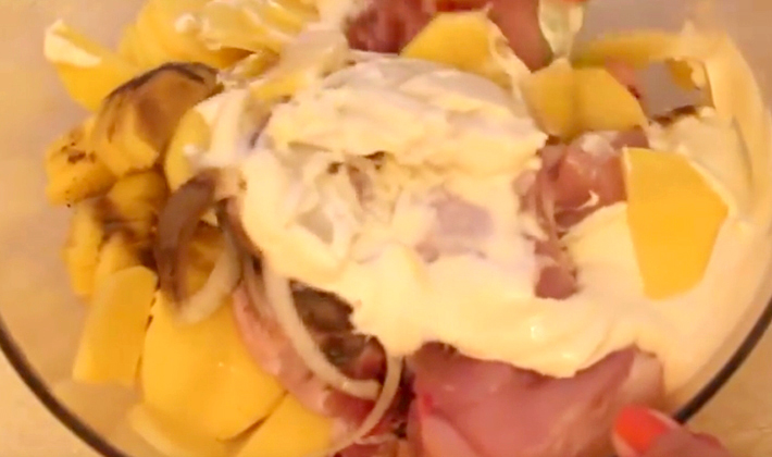 - Four à chanterelles avec poulet, pommes de terre et mayonnaise