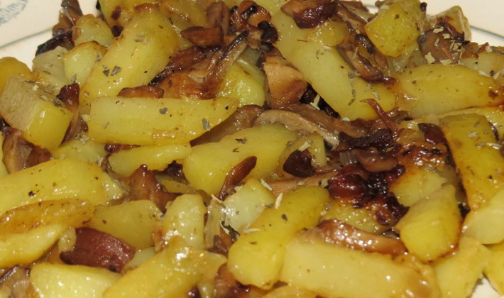 - Chanterelles frites avec viande et oignons