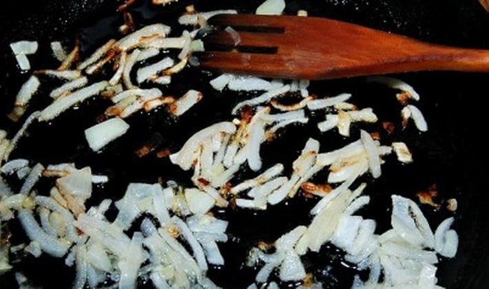 Couper l'oignon en dés, faire frire à l'huile jusqu'à tendreté.