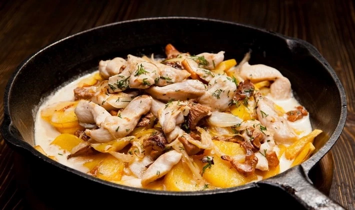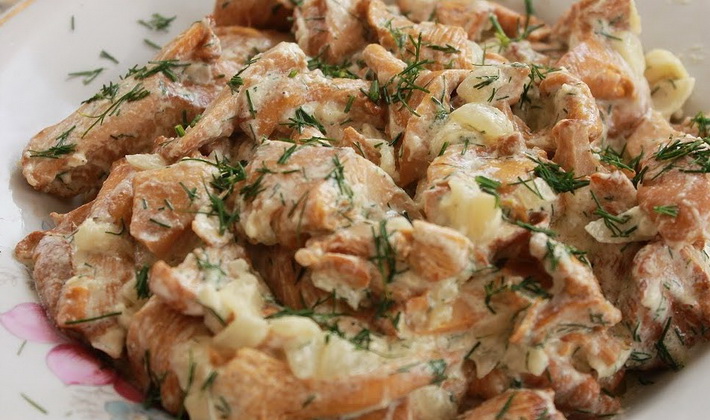 - Chanterelles à la viande de poulet à la crème sure