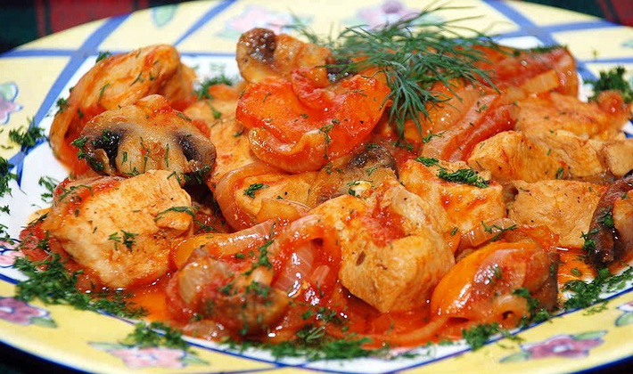 Chanterelles à la viande de poulet à la crème sure