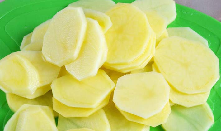 Pommes de terre bouillies jusqu'à la moitié de la cuisson, peler et couper en cercles.