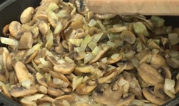 - Faites chauffer le beurre fondu dans une casserole, mettez les champignons et faites-les frire jusqu'à ce qu'ils soient dorés.