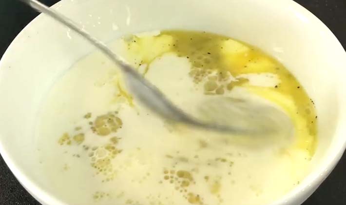 - Poivre noir moulu et sel sont versés au goût, la mayonnaise est versée et mélangée jusqu'à consistance lisse.