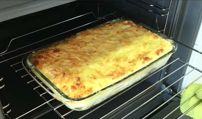 Placez le moule dans un four préchauffé et faites cuire à 180 ° C pendant 40 minutes, jusqu'à ce qu'une croûte brune apparaisse à la surface de la casserole.