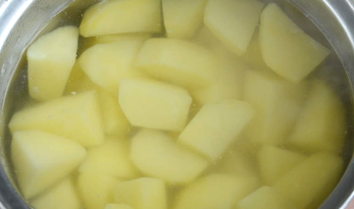 - Après ébullition, les pommes de terre pelées et coupées en dés sont envoyées à l'eau.