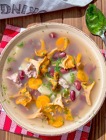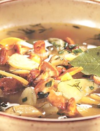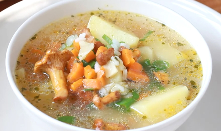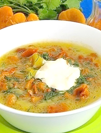 Les premiers plats de chaque famille russe constituent l'attribut principal de la table à manger. De nombreuses personnes préfèrent les soupes aux champignons, notamment les soupes à la crème et les purées. Les soupes de girolles sont particulièrement appréciées, car elles sont riches en vitamines et en minéraux utiles et ont un effet bénéfique sur le corps humain.