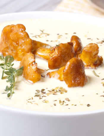 Une soupe de girolles à la crème parfumée, consistante et délicieuse conquiert tous ceux qui la goûteront.