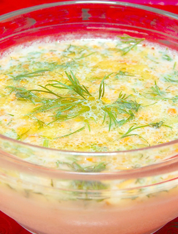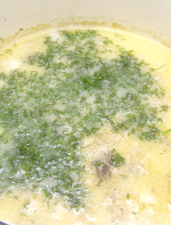 - Ajouter le beurre et l'aneth haché, porter à ébullition et retirer du feu.
