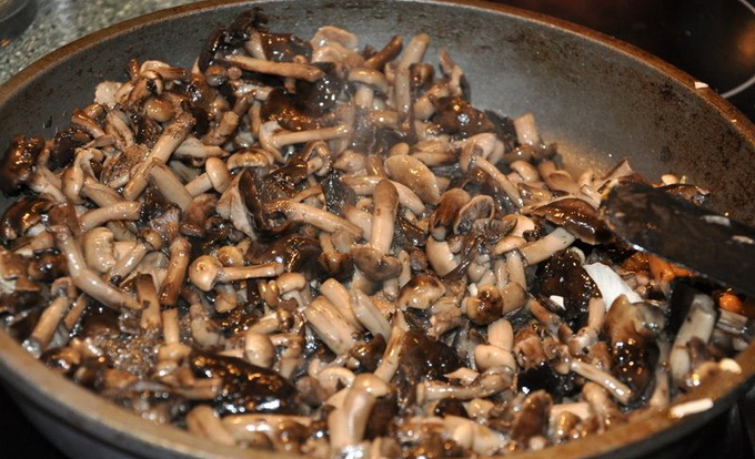 Mettez les champignons au miel dans une casserole, ajoutez le beurre et faites les frire 15 minutes à feu moyen.