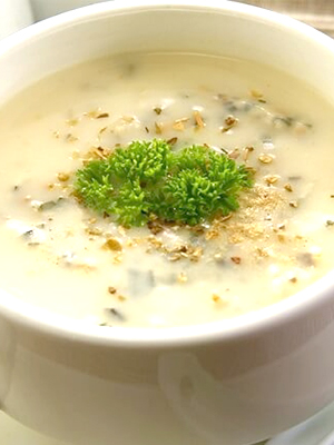 Regardez la vidéo sur la cuisson des champignons royaux pour une soupe à la crème.