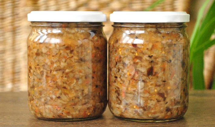 - Disposer dans des pots stérilisés, verser l'huile restante dans la casserole et rouler. S'il n'y a pas assez d'huile, il vaut la peine de chauffer une nouvelle portion et de la verser dans des bocaux.