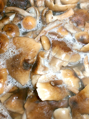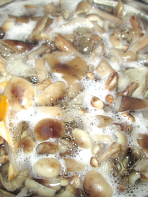 Les champignons de miel débarrassés des débris forestiers sont lavés à grande eau et bouillis 30 minutes.