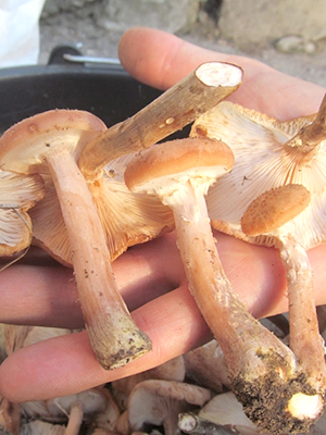 - Les champignons au miel sont triés, rejetés, cassés et gâtés, lavés à grande eau et coupés au bout des cuisses.