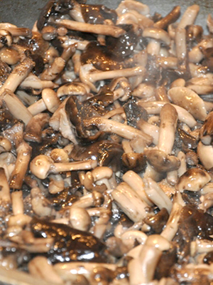 - Faites frire jusqu'à ce que tout le liquide se soit évaporé des champignons.