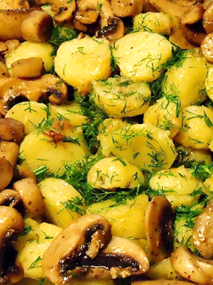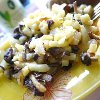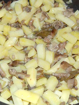Faites aussi frire les champignons dans une petite quantité de beurre et mélangez avec les pommes de terre dans une casserole.