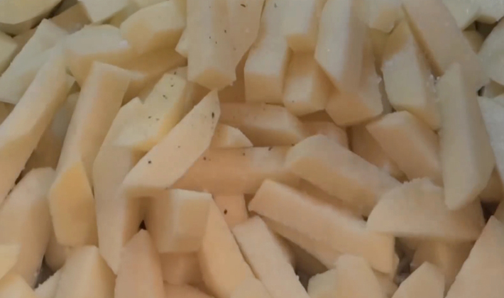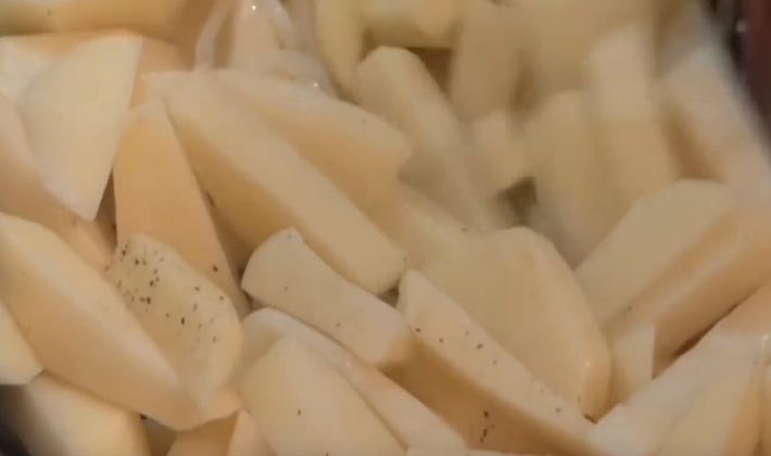 - Rincez soigneusement les pommes de terre tranchées dans de l’eau pour éliminer l’amidon, puis pendant la cuisson, les légumes auront une couleur dorée et croustillante.