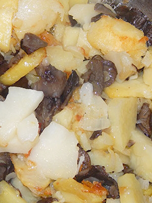 - Remuer et verser le mélange obtenu de pommes de terre et de champignons.