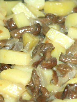 - Ragoût de pommes de terre au miel et aux champignons dans du lait