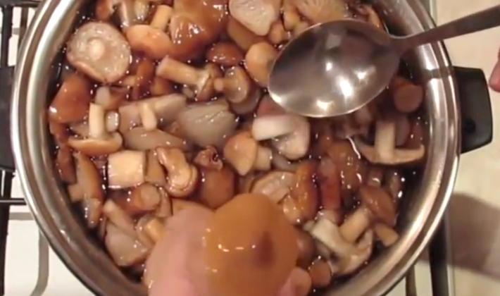 - Après le nettoyage, mettez les champignons frais dans de l'eau bouillante et laissez bouillir pendant 15 minutes.
