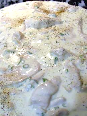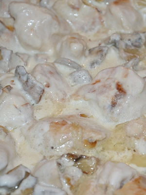 - Champignons au miel cuits à la crème aigre et poitrine de poulet