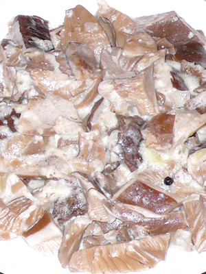 - Un mélange de légume et de beurre est tartiné dans une poêle chaude, puis on introduit les champignons nettoyés et lavés.