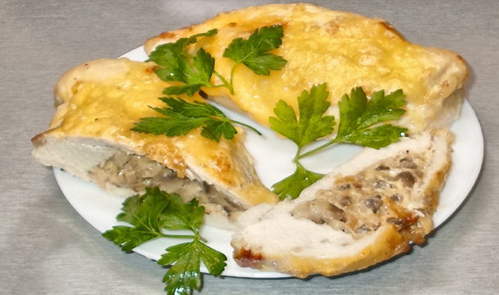 Poitrine de poulet au miel et aux champignons au four: recette avec photo