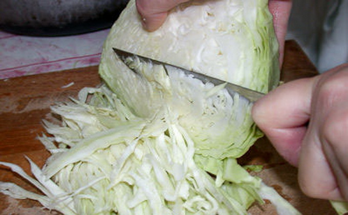 Alors, avec une déchiqueteuse ou un couteau, nous coupons le chou en fines lanières, nous frottons les carottes sur une râpe grossière et nous combinons ces légumes.
