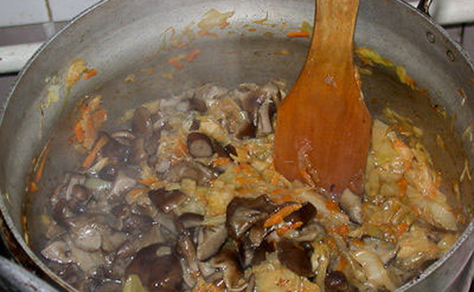 Champignons au miel avec chou et carottes