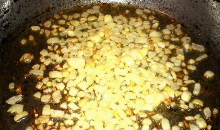 Faire frire dans l'huile végétale pendant 15 minutes, ajouter et saupoudrer de poivre noir.