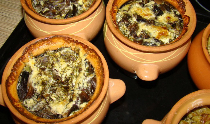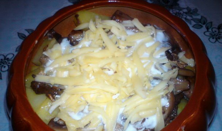Comment faire cuire les champignons en pot avec des pommes de terre et de la crème sure
