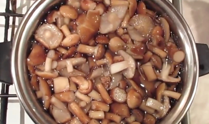 - Les champignons au miel préalablement nettoyés bouillent dans de l'eau bouillante pendant 15 minutes.