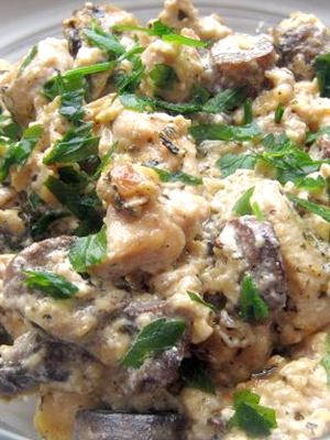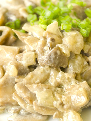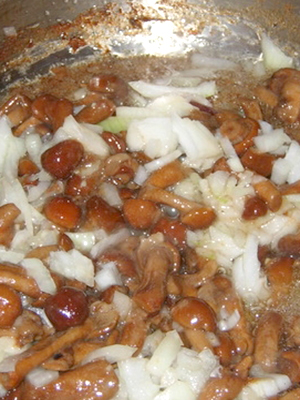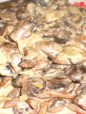 - Champignons au miel frits avec oignons et paprika à la crème sure