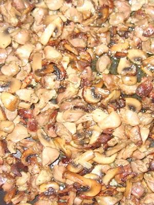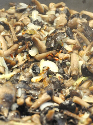 - Laisser refroidir légèrement, mélanger avec les champignons et broyer avec un mixeur.