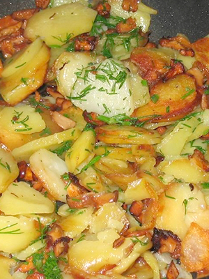 Les champignons au miel, frits avec des oignons, sont également combinés avec des pommes de terre, ce qui rend le plat plus saturé. Il est parfait pour un déjeuner ou un dîner en famille.